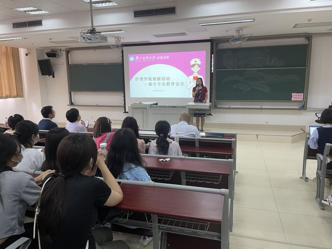 迎来了2022级护理学专业150名新学子,他们从全国各地来到了这里,开启了全新的校园生活。9月1日上午9:00,我院在番禺校区A3-224教室举办了2022级新生专业教育会议。学院领导雷丽琼书记、徐学虎副院长、黄美凌副院长、办公室叶盛主任、教研办韩媛主任、学生办黎泽华老师、2022级护理专业兼职班主任及2022级护理学专业全体同学参加了本次活动。
