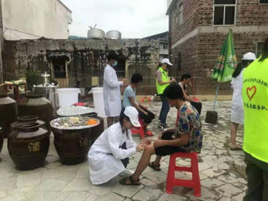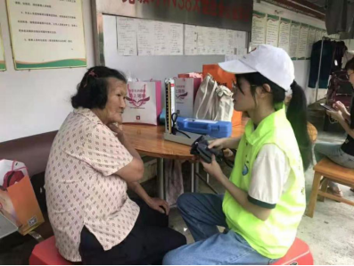 特色志愿服务项目,在常规的量血压、按摩、推拿、艾灸外,将健康护理、预防保健等知识融入义诊,进行健康宣讲,引导村民养成良好的生活习惯,建设“健康中国”;