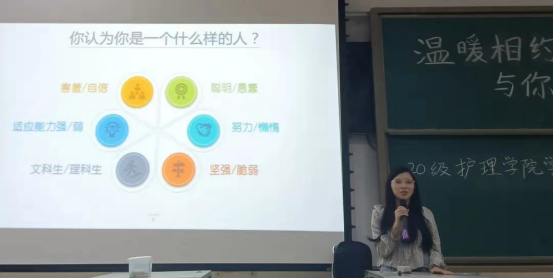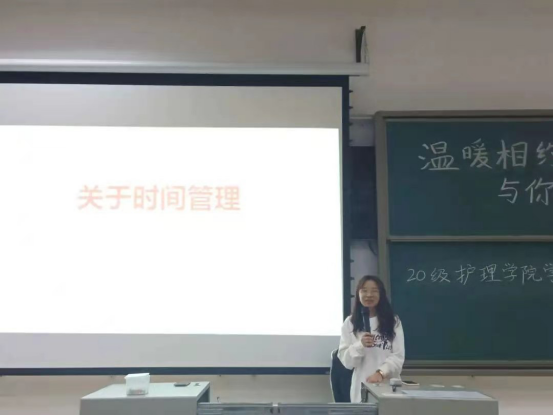 19级周政宜做学习经验分享。她向大家分享有关大学时间管理、人际关系、学习方法、创分和综测等信息,并且现身说法,讲述个人在大学里的学习和生活,传授处理人际关系及时间安排的方法。