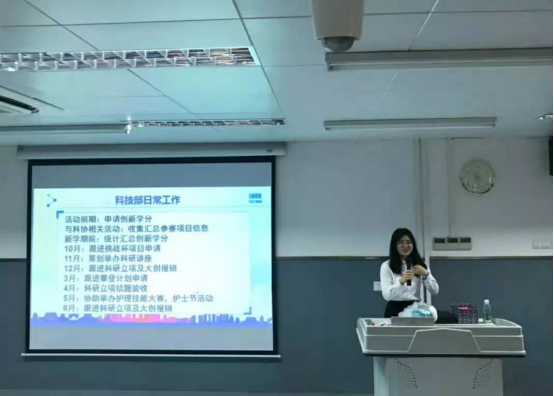 各部部长介绍自己部门的工作与职能,让干事们清晰各部门的日常工作,也为接下来的换届大会作铺垫。