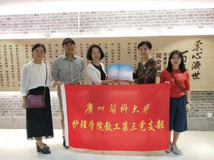 接着本支部和广医三院护理部党小组一起参观该院院史馆,本着不忘初心,循根我院护理专业的起源和发展历程并赠书留念,为医院带教老师提供科研及教学的工具。参观后,大家围坐讨论当前护理教学改革中面临的问题,包括学生的科研能力、操作动手能力、沟通能力及用人单位的满意度等。