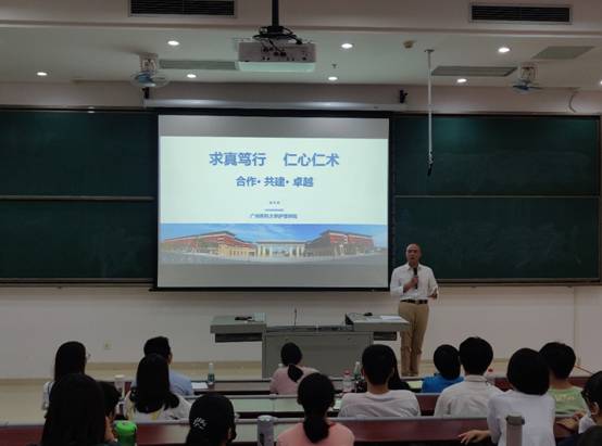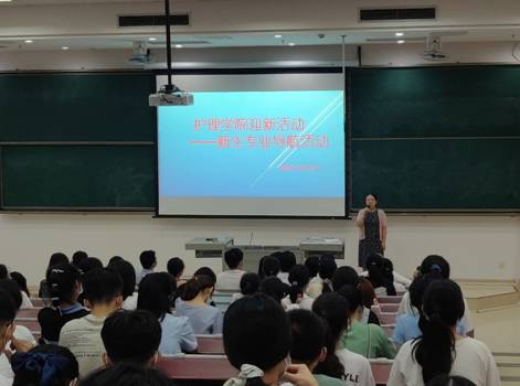 紧接着,徐学虎副院长向同学们介绍了我院护理学专业的总体情况。他从学院的办学历史、办学宗旨、办学理念、专业定位、人才培养目标、学科专业发展情况等方面,对我院护理学专业做了详细的介绍,并鼓励同学要珍惜在校的学习时光,为就业或升学打好基础。