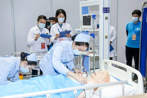 护理学子的专业风采,体现了广医人的拼搏精神。最终,我院参赛队伍获第十届中国大学生医学技术技能大赛护理学专业赛道华中华南区赛一等奖,进入全国总决赛。