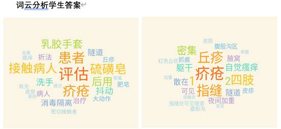 疫情时期,课程采用授课视频+在线翻转+案例讨论的方式,建立“虚拟课堂”,学生在线签到进课堂,教师发布案例分析,通过学习通“在线跟帖讨论”、“qq群发言答疑”、“课前、课后测试”、“答题赚积分”多种方式与教师互动。教师通过“词云“分析学生答案,精准反馈,根据学生互动情况课后发布文献,供学生拓展。