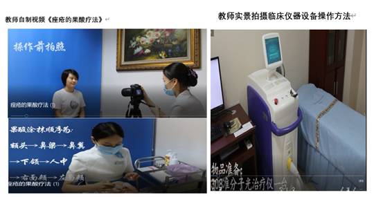及广州市皮肤病防治研究所的主任医师、主任护师多名一线专家,制定教学应急方案,引用国内外优质课程资源、挖掘临床典型案例、自制见习操作视频、打造优质慕课资源,充分课前准备、特色课堂教学、丰富资源课后拓展,师生同行,共同打响教学“抗疫” 阻击战。
