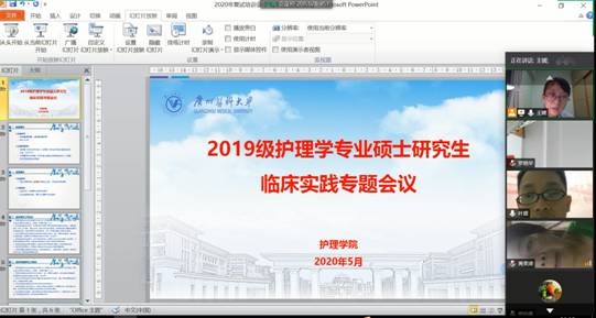 为进一步规范护理学专业硕士研究生临床实践,提高人才培养质量,我院于2020年5月17日晚8点30分通过腾讯会议平台召开2019级护理学专业硕士研究生临床实践线上专题会议。2019级护理学专业硕士研究生导师、临床导师、研究生及相关的教学管理人员参加了会议。