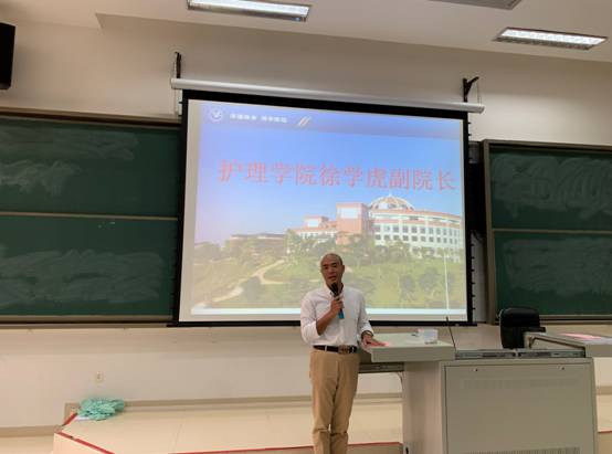 最后,周英院长以《护理与人生——大爱、责任、专业精神》为主题给同学们开展了50分钟的专题讲座,详细地介绍了护理学的起源、发展与未来,护理教育的发展历程,人才培养模式、就业前景等多个方面,内容翔实有趣,鼓励大家从广医起航,迈向未来,走向世界。同学们均表示受益良多。