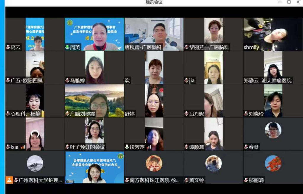 2022年5月6日晚八点,广东省护理学会成立正念与积极心理护理专业委员会(以下简称:专委会)成立大会以腾讯会议直播的方式成功召开。专委会主委、色漫天堂