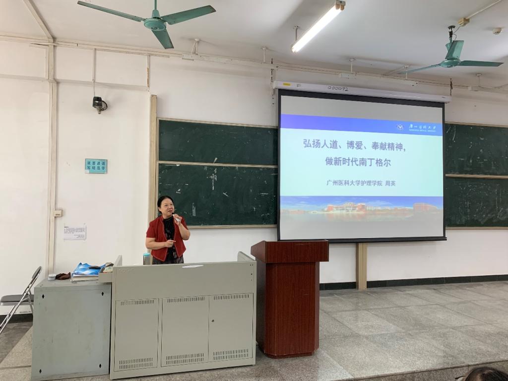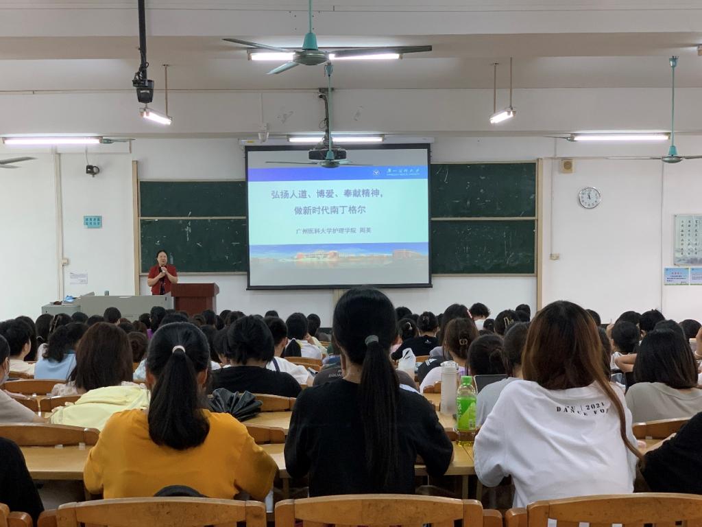 周英院长为2021级护理学专业本科生开展题为《弘扬人道、博爱、奉献精神,做新时代南丁格尔》的思政第一课。