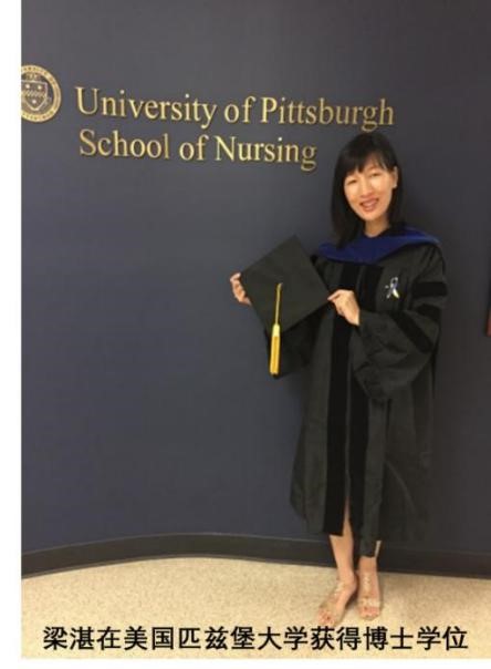梁湛, 1984年出生,2003年考入我校本科护理学专业,2007年本科毕业、获学士学位,本科毕业后在我校附属第一医院工作一年,此后到澳门大学医院工作。2010年前往美国学习深造,2013年在美国匹兹堡大学获得护理理学硕士学位,2015年获得匹兹堡大学护理哲学博士学位,考取了美国护士执业资格证。现任职于美国佛罗里达州的迈阿密大学护理与健康学院,担任助理教授。主持多项科研课题,如Society of Critical Care Medicine基金项目Move to Music Video Program, A Self-Managed Exercise Program for ICU Survivors,American Thoracic Society Foundation基金项目Music-Enhanced Physical Exercise for ICU Survivors; University of Miami基金支持项目Exercise with Music: A Self-Management Exercise Program for ICU Survivors等。在SCI收录期刊发表论文多篇,其中以第一作者发表论文8篇。分别于2012,2014,2015年获得美国American Thoracic Society Abstract Scholarship奖学金。