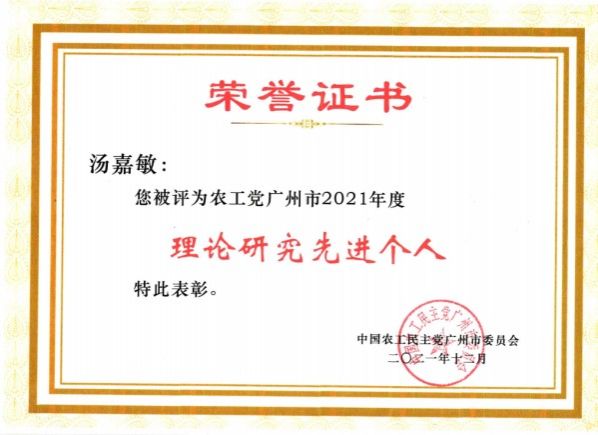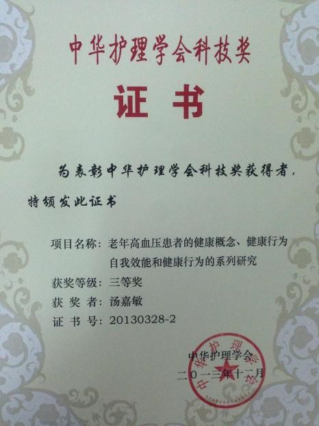 “敦兮其若朴,旷兮其若谷”。十年护理临床路,同时也是科研深耕路。主要研究领域:慢性肾脏病护理,腹膜透析相关并发症护理等。主持省市区级课题6项,发表论文30余篇,其中第一作者11篇。获国家实用新型专利3项。科技项目“老年高血压患者的健康概念、健康行为、自我效能和健康行为的系列研究”获得中华护理学会科技奖三等奖;论文“煮酒论英雄——个案与理论相结合论新时代下社会服务的热潮与推动”获得中国农工民主党中央理论研究论文三等奖;个人先后荣获“花都区优秀护士”“广州市优秀护士”“花都区优秀护理管理者”“广州市农工党理论先进个人”等称号。