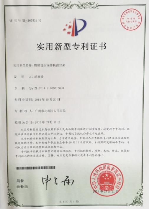 “岁月嵯峨,日新月异”。如今的她,是经过十年临床打磨的护理能手。自担任肾病学科护士长以来,积极发展专科护理新技术并转化为常规护理技术:手动动静脉内瘘溶栓术,发现动静脉内瘘堵塞,立刻绿色启动绿色通道,给患者进行溶栓,成为广州市内少有的手动溶栓血透中心;可远程监控自动化腹膜透析(APD)的临床应用,减少腹透病人白天腹透的时间,白天病人可从事轻工作 ,提高了病人的生活质量,重新回归社会;动静脉内瘘钝针扣眼法穿刺技术,保护患者血管,保障患者充分透析赢得一线生机;2019年在医院的帮助下,曾到美国布卢姆菲尔德学院进修学习,回科后开展一次性内瘘留置针在动静脉内瘘患者中的应用新技术,特别针对内瘘条件不良、金属过敏、焦虑及烦躁者、急诊CRRT患者进行使用,透析效果良好。2017年成功申报广州市女职工创新中心《腹膜透析创新中心》和成功创办广州市青年文明号,并以此为契机和动力,继续推进护理技术的创新发展。