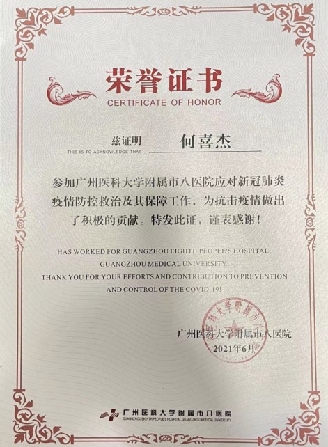 何喜杰作为一名正式党员,勇于担当,2020年及2021年期间两次支援色漫天堂