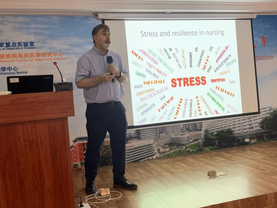 Smith教授从资深编委的视角对师生如何投稿SCI论文做了进一步的指导。在心理弹性专题讲座中Smith教授强调护理人员可以通过学习积极心理学、采用正念等方法调节心理弹性,减轻职业压力;他还分享了自己的研究“临床肾脏疾病中的健康素养”,为大家展现了护理科研的全过程并非一蹴而就,需要付出艰辛的努力。在5次专题讲座过程中,师生们听课十分认真,还不时提问和交流,大家受益匪浅。周英院长对系列讲座进行了总结并给予高度评价,希望师生们在科学研究的道路上勇于创新、不断超越,产出更多高水平研究成果,为护理学科发展做出积极努力。